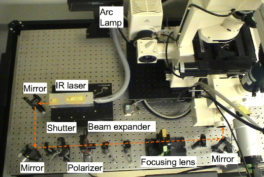 Top view of optical system to study sperm motility and energetics