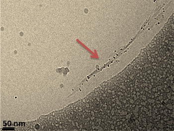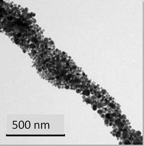 Cryo-TEM image of CNC-Ag composite particles obtained after the first metallization step