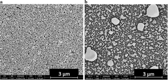 High resolution scanning electron microscopy (SEM) images were recorded with a FEI Nova NanoSem 650 with the following settings: an acceleration voltage of 4 kV, spot size 3, chamber vacuum of 60 Pa and a gaseous analytical detector, or with an acceleration voltage of 5 kV, spot size 3, chamber vacuum of circa 1 mPa and a through lens detector.
