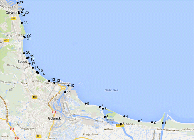 Test points along the Gdansk Bay coastline