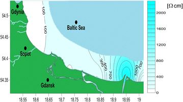 Map of resistivity distribution along the Gdansk Bay coastline