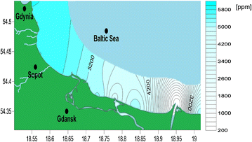 Map of salinity distribution along the Gdansk Bay coastline