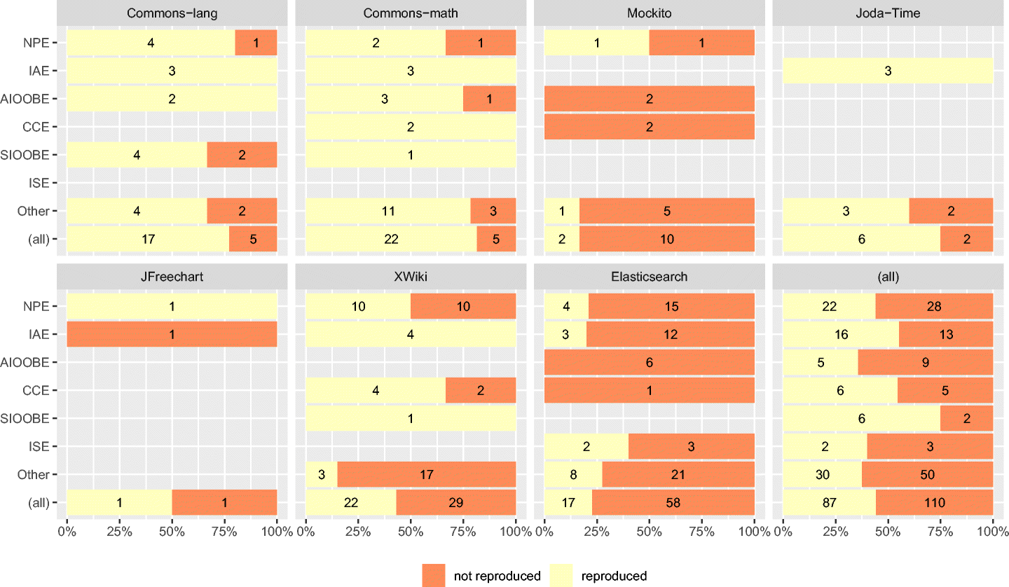 Empirical evidence,3 demonstrating the effectiveness of search-based crash reproduction on real world crashes taken from JCrashPack.