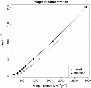 Pelagic nitrogen concentration as a function of total nitrogen input