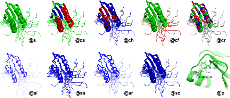 | @cs | Color by secondary structure (red: helix, blue: strand, green: loop) |