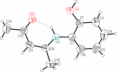 The Schiff base ligand, 4-[(2-hydroxyphenyl)imino]-2-pentanone (H2hpac), was prepared as described in the literature [6]. The single crystals suitable for X-ray data collection were obtained by slow evaporation of the ethanol solution (after 2 days). The crystals were filtered off, washed with a small amount of cold methanol and dried under vacuum.