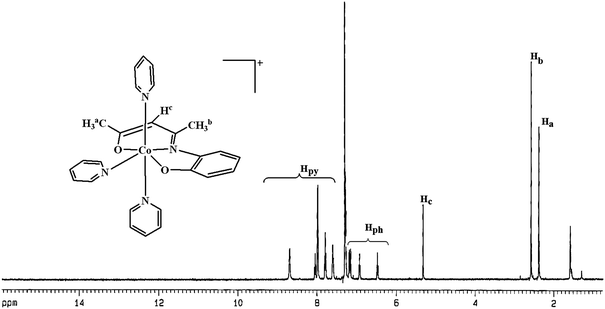 1HNMR spectrum of [CoL(py)3]PF6 in CDCl3