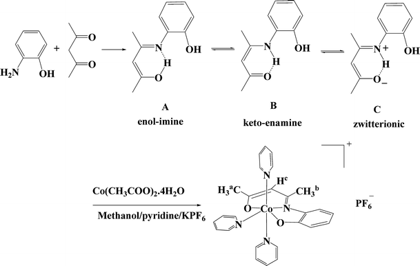 Cobalt(III) complexes derived from symmetrical and nonsymmetrical Schiff bases have drawn considerable attention in the past for their important biological applications. A number of model complexes with cobalt(II) and cobalt(III) have been prepared with particular emphasis on the reactivity of the metal ions in the transmethylation reaction and on the reversible absorption of molecular oxygen [12, 13, 14, 15, 16, 17, 18]. As a continuation of our studies on Schiff bases [19] we have performed the preparation and characterization of [CoIII(hpac)py3]PF6 (hereafter referred to as 2). The spectral properties of the complex were investigated by FT-IR, UV–Vis, and 1HNMR spectra. The X-ray crystal structures of 2 and of the ligand 1 have been determined. The antibacterial activities of both the Schiff base ligand 1 and it’s complex 2 against Bacillus subtilis (Gram-positive), Staphylococcus aureus (Gram-positive), Escherichia coli (Gram-negative) and Pseudomonas aeruginosa (Gram-negative) have also been evaluated.