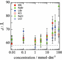 Hishida, M., Yamamura, Y., Saito, K.: Salt effects on lamellar repeat distance depending on head groups of neutrally charged lipids. Langmuir 30, 10583–10589 (2014)