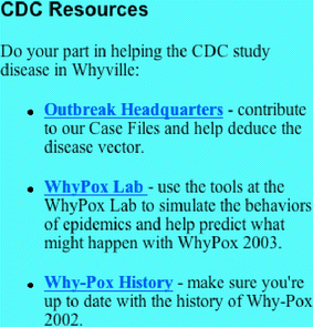 Simulation tools available at Whyville’s CDC.
