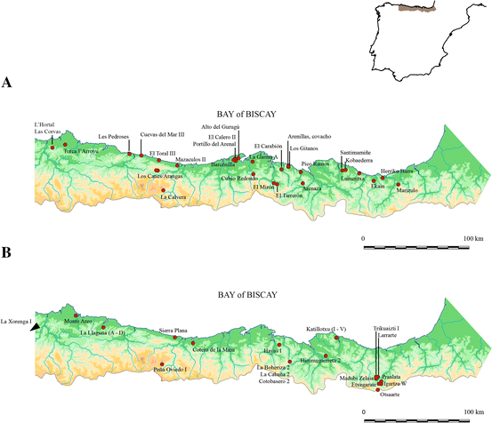 As in previous periods, most archaeological deposits are located in caves and rock-shelters, and open-air sites are rare (Fano 2004). The population pattern is basically coastal, even though some sites are a considerable distance from the shore. The best-known group of deposits is in eastern Asturias (Fano 1998), and these are not located strictly on the coastline, especially when the effects of the post-glacial sea-rise are taken into account. The transportation of resources, both marine and terrestrial, to those sites demonstrates the existence of areas of habitation in the caves or in areas connected with them, as has been proposed for Mazaculos cave (González-Morales et al. 1980); el Mazo and El Toral III (Gutiérrez-Zugasti et al. 2014; Noval 2013); and El Alloru (Arias et al. 2015, in press).