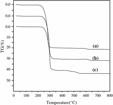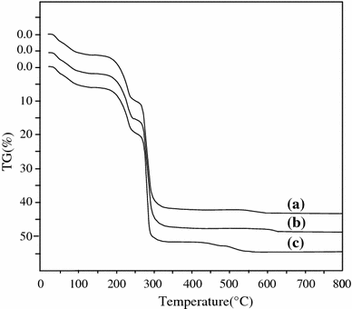 TG curves of (NH4)2UO2(NO3)4·2H2O in a N2, b air, and c H2 atmosphere