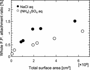 Attachment behavior of fission products to solution aerosols has been observed to elucidate the role of chemical effects in the generation mechanism of fission-product aerosols. Primary aerosols generated from aqueous solution of sodium chloride or ammonium sulfate were passed through a fission-product chamber, and radioactive aerosols were generated by attaching fission products to the primary aerosol particles. Attachment ratios of the fission products on aerosols were estimated from activity measurements. It was found that the attachment ratio of the sodium chloride solution aerosol is larger than that of the ammonium sulfate solution aerosol.