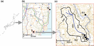 The authors express their sincere thanks to Masahiro Hirasawa, Makiko Ishihara, and Kazumi Matsumura for their assistance with extensive laboratory work. The permission to use the preserved forest from the forestry management authorities in Ibaraki Prefecture and the Forestry Agency of Japan is gratefully acknowledged. The use of the weir was kindly permitted by the Forestry and Forest Products Research Institute. We are also grateful to a landowner for their permission to use an open plot for a precipitation gauge. Aya Sakaguchi inspired T.M. to interpret regional features of the Japanese environmental conditions.
