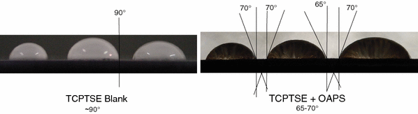 Comparison of contact angles for TCPTSE coated Al and after reaction with OAPS