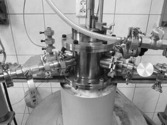 Upper part of sample dosing system are two quartz locks. One doses samples directly into the bath, and the second one is for placing samples in intermediate container. In both locks atmosphere is purified with argon during placing samples in a lock. It was possible to obtain by applying valve system and connection with vacuum pump set (rotary and turbo molecular).