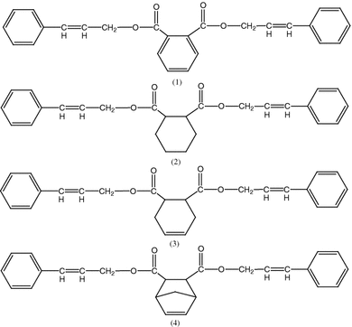 3-Phenylprop-2-en-1-ol (98 %) was from Fluka. Phthalic anhydride (98 %), cyclohexane-1,2-dicarboxylic anhydride (98 %), 4-cyclohexene-1,2-dicarboxylic anhydride (98 %) and bicyclo[2.2.1]-5-heptene-2,3-dicarboxylic anhydride (97 %) were delivered by Merck. Butylstannoic acid was obtained from Arkema Inc., USA. The reagents were used as received.