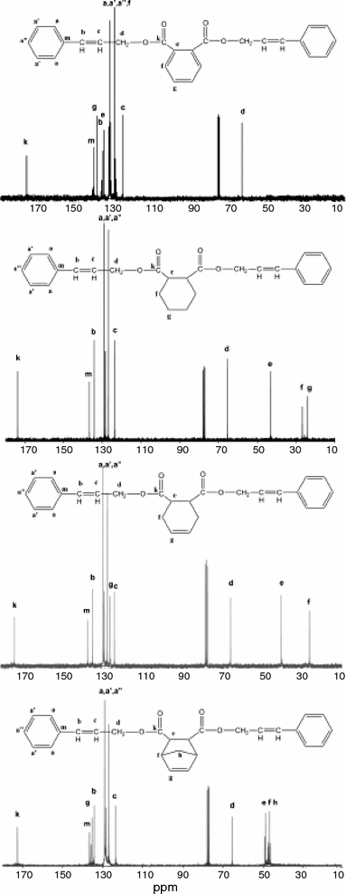 The all resonance signals responsible for the carbons in the structure of those compounds are marked in Fig. 5. In addition, the absence of the signals for carbon in –CH2– group of 3-phenylprop-2-en-1-ol (at 64 ppm) and the presence of new signals at 67 ppm (carbons in –CH2– groups) and at 175 ppm (carbons in carbonyl groups) confirms the formation of ester products.