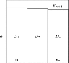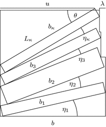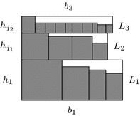 the rectangles \(\ R_1, \dots , R_{j_k-1}\ \) can be packed into the union \(\ \bigcup _{i=1}^k L_i\ \) of rectangles \((\)with mutually disjoint interiors\()\) \(L_i\) of sides of length \(b_i\) and \(h_{j_{i-1}}\);