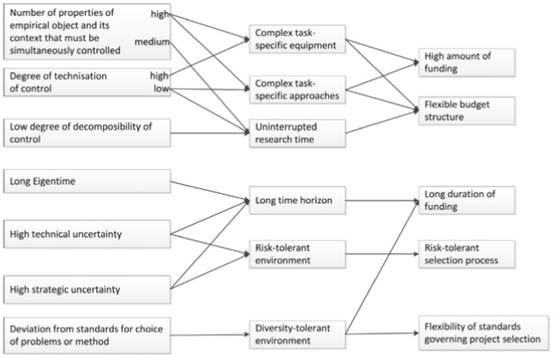 Important advances have been made to connect the epistemic dimension of scientific practice, i.e., how scientists produce knowledge, to the science systems in which these practices take place. While these two domains are often studied separately in the fields of science studies and science policy studies (Gläser and Laudel 2016), recently scholars have begun to connect these fields empirically and theoretically and have developed models that aim to understand the relation between funding arrangements and epistemic and organizational properties of research.