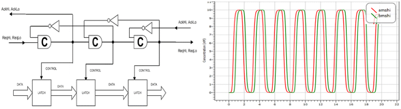 - Nguyen N-PD, Kuwahara H, Myers CJ, Keener JP (2007) The design of a genetic muller c-element. In: 13th IEEE international symposium on asynchronous circuits and systems, 2007. ASYNC 2007. IEEE, pp 95–104Google Scholar