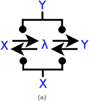 Two diagrammatic CRNs which are capable of computing Approximate Majority Angluin et al. (2008). In a we present the original in which the inputs X, Y, dependent on which species has the majority, influence outputs X, Y. b Shows a similar AM circuit, but now the input species are catalysed to arbitrary output species W, Z