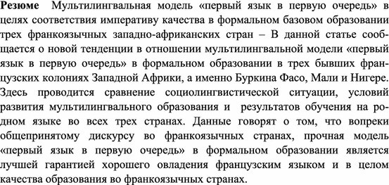 Ein Mehrsprachigkeitsmodell nach dem Prinzip „Erstsprache zuerst“, das dem Qualitätsanspruch an die formale Grundbildung in drei „frankophonen“ westafrikanischen Ländern genügt – In diesem Artikel geht es um den neuen Trend zu einem Mehrsprachigkeitsmodell nach dem Prinzip “Erstsprache zuerst“ in der formalen Bildung dreier ehemals französischer Kolonien in Westafrika, nämlich Burkina Faso, Mali und Niger. Er enthält einen Vergleich der soziolinguistischen Konstellationen, der Entwicklungsbedingungen mehrsprachiger Bildung und der muttersprachlichen Bildungserfolge in allen drei Ländern. Dabei wird deutlich, dass, entgegen dem allgemeinen Diskurs in der französischsprachigen Welt, in der formalen Bildung ein solides Modell nach dem Prinzip „Erstsprache zuerst“ der beste Garant für gute französische Sprachkompetenz und, allgemeiner, für eine qualitativ hochwertige Bildung in frankophonen Ländern ist.