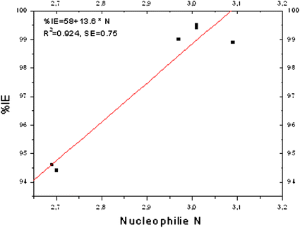 Correlation of nucleophilicity N gaps with percent inhibition of L1–L6