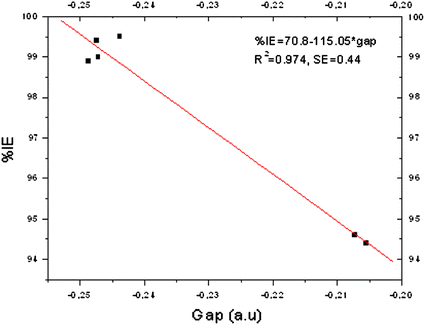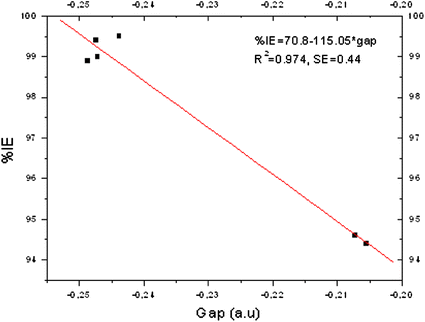 Correlation of EHOMO-1−ELUMO energy gaps with percent inhibition of L1–L6