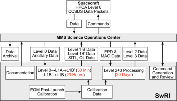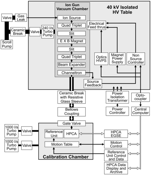 In addition to the primary calibration constants in Table 7 there are a number of auxiliary parameters to be determined as well. These include, for example, MCP gain as a function of bias voltage, and the performance of the amplifiers and discriminators. Checking that starts, stops and valid-events data match the primary TOF measurements also falls into this category. Calibration system auxiliary data to be collected in coordination with HPCA operations include beam energy, beam current, ion source pressure, and Residual Gas Analyzer (RGA) scans to monitor the composition of background gas in the chamber.