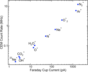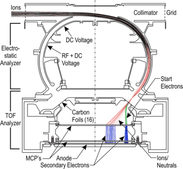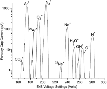 | Mass range | 1 to 16 amu | H+, \(\mathrm{H}_{2}^{+}\), He+, O+ |