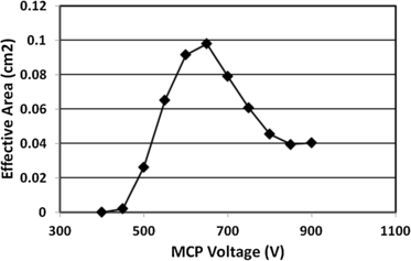Effective area of FM3 Anode 14 plotted against MCP voltage. The beam energy was 1.0 keV