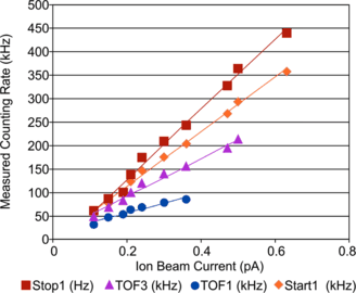 | TOF range | 1 to 250 ns | H+, 40Ar+ |