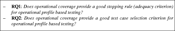 The rest of the paper is structured as follows: in the next section, we introduce operational coverage. Then, in Section 3, we present the settings of our empirical evaluations, including the Research Questions and the study subjects. The results of adopting operational coverage are reported and illustrated separately for adequacy and selection in Sections 4 and 5, respectively. We discuss threats to the validity of our study in Section 6. Related work (Section 7) and Conclusions (Section 8) complete the paper.