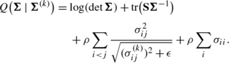Consider \(\sqrt{\sigma_{ij}^{2}+\epsilon}\) as an approximation to |σ ij | for a small ϵ>0. Consequently, the original objective function (1) can be approximated by