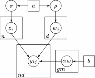 Note that the formulae of VEM and SEM-Gibbs are essentially the same, except that the probabilities \(s_{ik}\) and \(t_{j\ell }\) are replaced with binary indicator values \(z_{ik}\) and \(w_{j\ell }\).