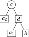Now we can introduce the idea of letting the main label indicate what object a vertex represents. That is, two vertices with the same main label, such as \(a_{1}\) and \(a_{2}\) in the tree in Fig. 12, will represent the same object. In addition, let the edge relation in this tree represent the element relation \(\in \). Then d represents the set \(\{a,b\}\), and c represents the set \(\{a,\{a,b\}\}\).
