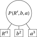 As we have just seen, however, the fact that we can represent a proposition, together with elements from which it is intuitively formed, by means of an S-tree, this does not entail that the proposition* is a structured object. It is a structured object only if the edge relation of the tree represents (or can represent) a part-of relation. However, all we know from the adequacy of the tree in Fig. 16 is that there exists some function P from conceptual elements to propositions such that P(R, a, b) is exactly the proposition* that Rab. The edge relation of the tree then represents the relation between the arguments, in left-to-right order, and the value, of the P function. This does not show that the value is a structured object with arguments of the function as parts, nor indeed a structured object at all.