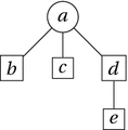 For the structured objects we are interested in, however, of a representational kind, we need two additional features of graphs. The first is that of ordering. In a rooted tree, if a is edge-related to b, and b is closer to the root (or is the root), a is said to be a daughter of b and b the mother of c. If both b and c are daughters of one and the same vertex, b and c are said to be sisters. Thus, a–d are sisters in the tree of Fig. 6.