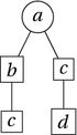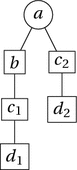 On this alternative, one treats the parthood and ordering relations on parts as relations over occurrences. In the tree of Fig. 9, (the occurrence of) d is part of an occurrence of c and an occurrence of c is part of (the occurrence of) b, but since these are different occurrences of c, there is no violation of transitivity in the fact that d is not part of b.