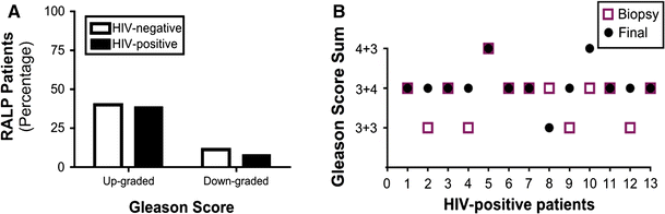 International Urology and NephrologyOctober 2016, Volume 48, Issue 10, pp 1647–1647 | Cite asErratum to: Clinical characteristics and outcomes of HIV-seropositive men treated with surgery for prostate cancerAuthorsAuthors and affiliationsSudeh IzadmehrMichael LeapmanAdele R. HobbsMaria KatsigeorgisFatima Nabizada-PaceSeyed Behzad JazayeriDavid B. SamadiEmail authorErratumFirst Online: 25 August 2016 407 Downloads Erratum to: Int Urol Nephrol DOI 10.1007/s11255-016-1338-4In the original published version, Figure 2A was incorrectly published. The correct Fig. 2A is given here. Open image in new window Fig. 2 Changes in Gleason score. Percentage of RALP patients that were upgraded or downgraded between biopsy and tumor removed by RALP (a). Change in Gleason score of HIV-positive prostate cancer before and after RALP (b) Copyright information© Springer Science+Business Media Dordrecht 2016Authors and AffiliationsSudeh Izadmehr12Michael Leapman12Adele R. Hobbs1234Maria Katsigeorgis4Fatima Nabizada-Pace12Seyed Behzad Jazayeri4David B. Samadi4Email author1.Department of UrologyIcahn School of Medicine at Mount SinaiNew YorkUSA2.University of California San Francisco School of MedicineSan FranciscoUSA3.Helen Diller Family Comprehensive Cancer CenterUniversity of California San FranciscoSan FranciscoUSA4.Department of Urology, Hofstra Northwell School of MedicineLenox Hill HospitalNew YorkUSA
