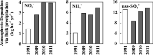Ham, Y. S., Kobori, H., Kang, J. H., & Kim, J. H. (2010). Ammonium nitrogen deposition as a dominant source of nitrogen in a forested watershed experiencing acid rain in central Japan. Water, Air, and Soil Pollution, 212, 337–344.
