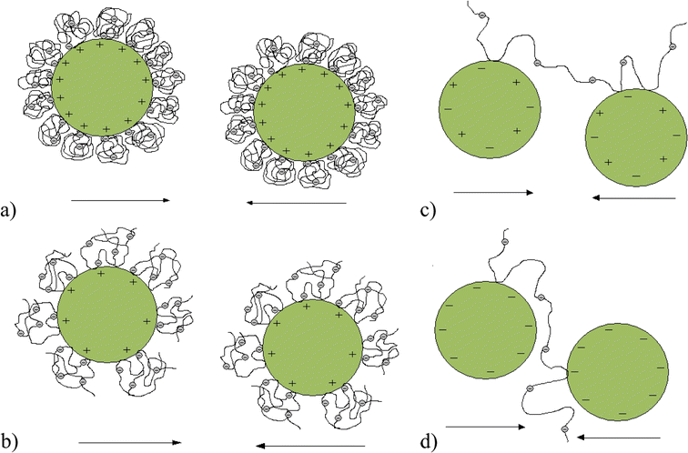 Destabilization mechanism of the Cr2O3 suspension by Sinorhizobium meliloti 1021 exopolysaccharide at pH: a 3, b 4.6, c 7.6, d 9. At pH 3 and 4.6 system destabilization is based on adsorbent charge neutralization by adsorbed macromolecules. At pH 7.6 and 9 there is bridging flocculation in the examined systems