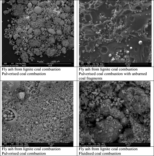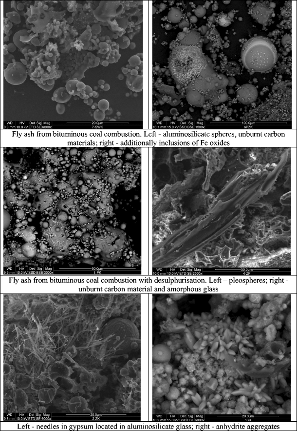 SEM microphotographs of fly ashes from bituminous coal combustion