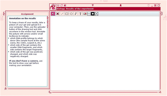 Developers and researchers in the project Science Created by You (SCY) designed the digital learning environment SCY-Lab, which contains a variety of tools aimed at supporting students’ development of conceptual understandings and inquiry skills (de Jong et al. 2012). The SCY-Lab program in the current study was the “forensic mission” designed to prompt student reflection in their process of analysing and reporting their results from the gel electrophoresis experiment described earlier. More specifically, the support tools aim at facilitating reflection on central scientific concepts and crime-scene investigations, as well as the analysis, documentation and reporting of the findings from the experiment. The SCY-Lab forensic mission is a highly structured environment featuring designated digital support tools aimed at supporting the students’ inquiry tasks. Each designated support tool provides a set of specific assignments directing the students through the planning, analysis and reporting of the lab experiment. Most support tools are in the form of text-editing tools, often containing prompts such as directive questions or sentence openers presented to the students in designated writing columns. SCY-Lab also contains a set of information resources, including a handbook about forensics and DNA-related animations.