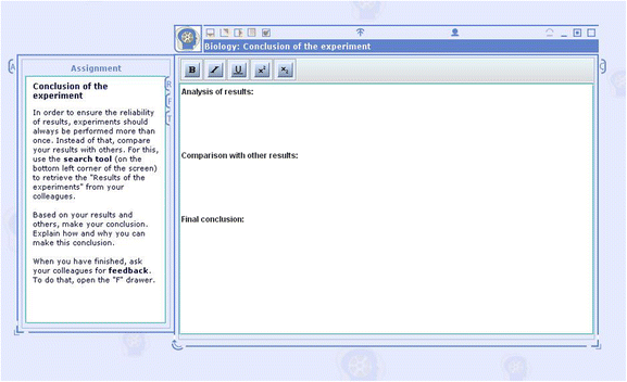 The text-editing column, as seen in Fig. 3, contained three topical sentence openers instructing the students to a) analyse their results, b) compare their results with other groups and c) draw a final conclusion.