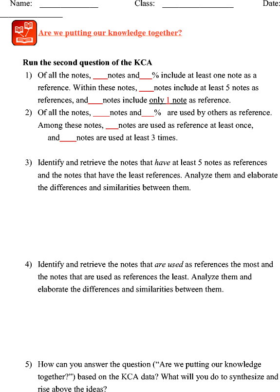 I am wondering whether we have really read the notes carefully and applied them to date. The number of reference notes is 34 and the number of notes that are being used as references is 56. We have written more than 150 notes...These data tell us that the extent of synthesis and collaboration is not higher than our expectation... (S.18, from the KCA reflection journal)