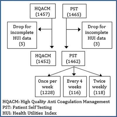 The main objective of this study was to conduct a cost utility analysis of weekly PST versus HQACM from the perspective of a health care system. Given that the THINRS test-frequency sub-study found that more frequent test frequency was associated with greater time spent in target INR range,13 a secondary objective was to examine the cost–utility of different PST testing frequencies.