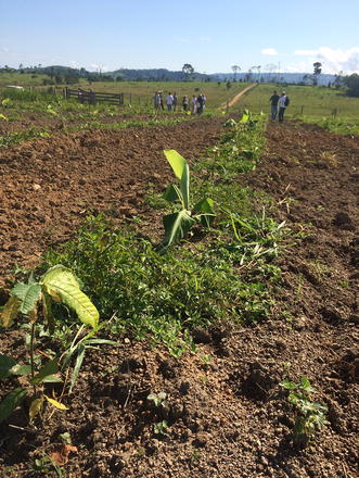 Former pasture land being reforested with a mixture of cocoa (Theobroma cacao) trees and bananas (Musa sp.), with timber trees to be integrated later, in the municipality of São Félix do Xingu, southeastern Pará State, Brazilian Amazon. The area was plowed to remove vegetation and topsoil compaction (Photo: B. Griscom)