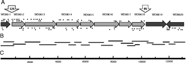 Relative abundance of WD0611–WD0620 homologs in C/wStr1 cells.